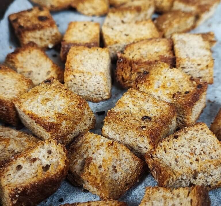 Τα σπιτικά κρουτόν είναι ο πιο εύκολος τρόπος να δώσεις γεύση και τραγανή υφή στις σαλάτες και τις σούπες σου. Με ελάχιστα υλικά και μέσα σε 10 λεπτά, μπορείς να έχεις τραγανά, αρωματικά κρουτόν που δεν έχουν τίποτα να ζηλέψουν από του εμπορίου — και χωρίς συντηρητικά!
