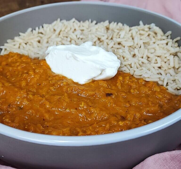 Έχω φτιάξει ξανά στο παρελθόν dahl κόκκινης φακής με καστανό ρύζι, αλλά αυτή η συνταγή είναι λίγο διαφορετική. Είναι φτιαγμένη χωρίς γάλα καρύδας (γιατί ξέρω ότι είστε πολλοί εσείς που δεν το αγαπάτε).