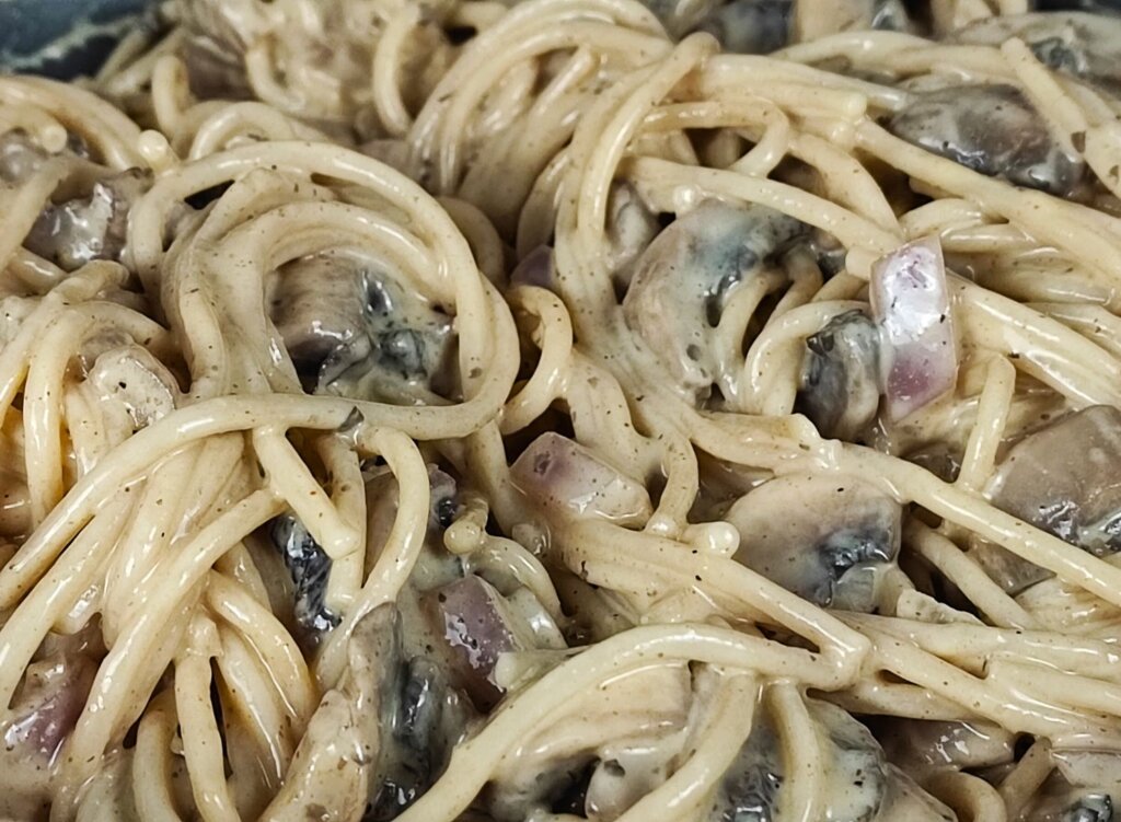 - Ξεκινάω βράζοντας τα ζυμαρικά σου σε αλατισμένο νερό. σύμφωνα με τις οδηγίες που αναγράφονται στη συσκευασία. Σόταρε τα μανιτάρια στο ελαιόλαδο μέχρι να ροδίσουν.