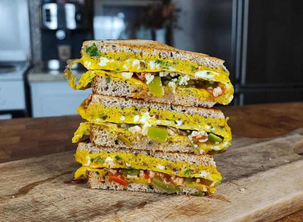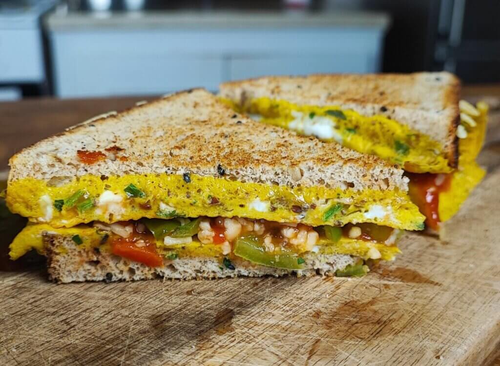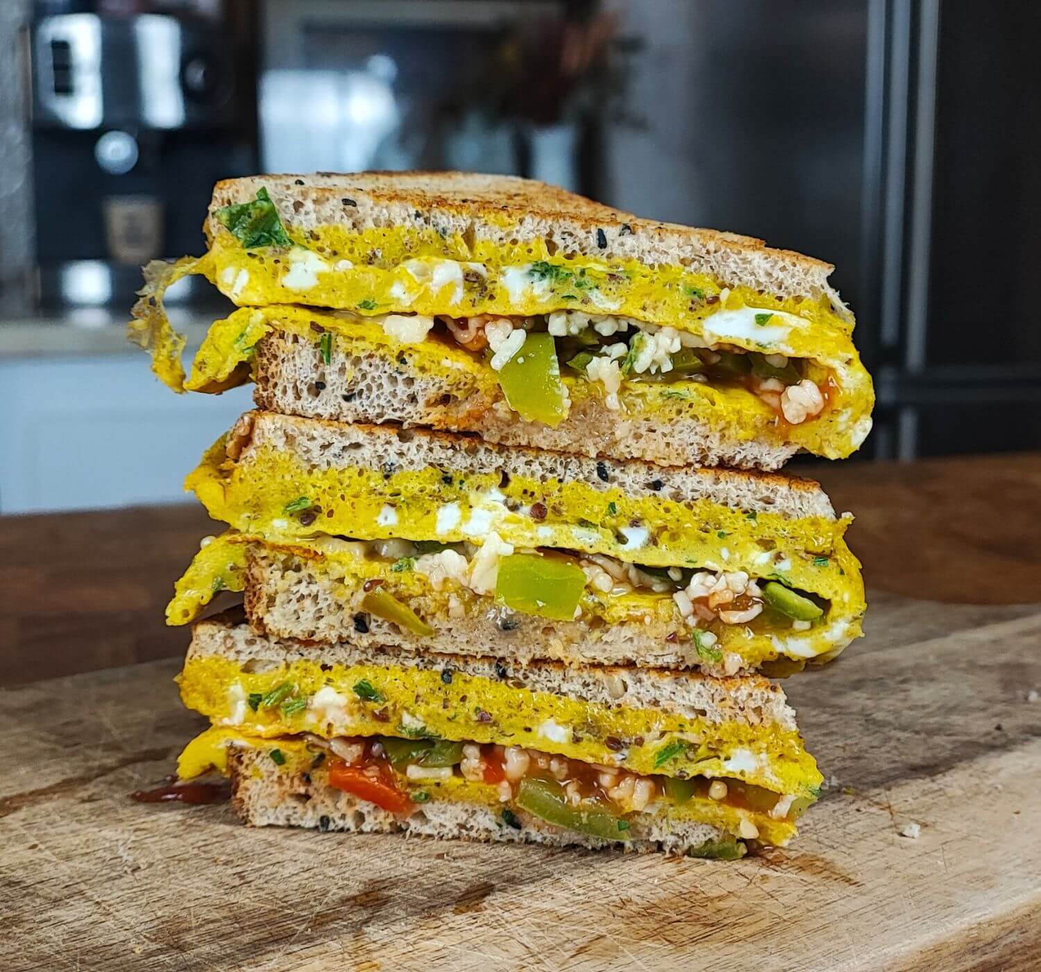 Γιατί; Γιατί πραγματικά είναι ένα πολύ εύκολο μεσημεριανό-βραδινό για τις ημέρες που θέλεις κάτι γρήγορο και υγιεινό. Η κλασική συνταγή (αυτή που είδα στα social) φτιάχνεται με μια απλή ομελέτα, λευκό ψωμί για τοστ, τριμμένο τυρί, αλλαντικά (τύπου πεπερόνι) και κέτσαπ. Δεν θα μπορούσα να τη φτιάξω έτσι (με ξέρετε). Την έκανα όμως πολύ πιο υγιεινή και πολύ πιο θρεπτική.