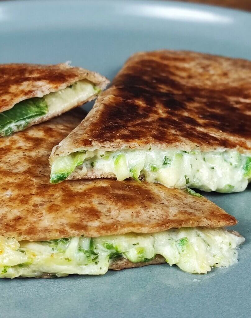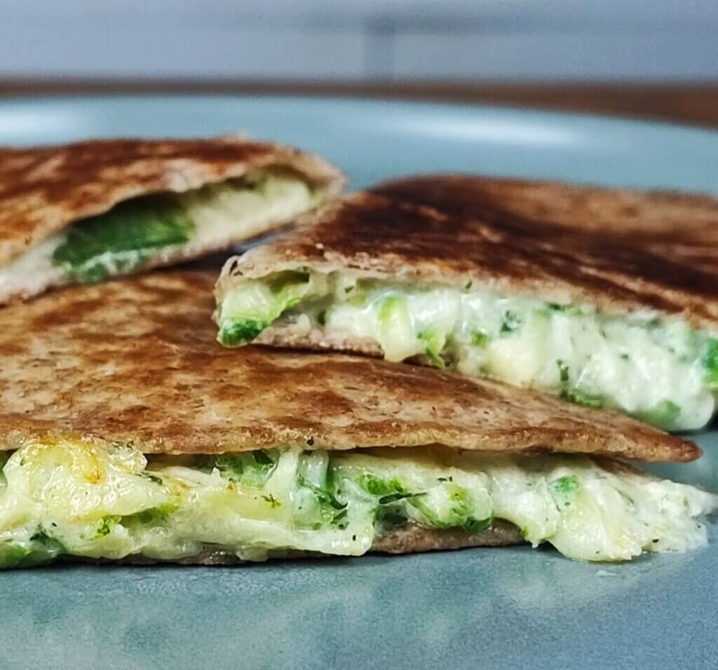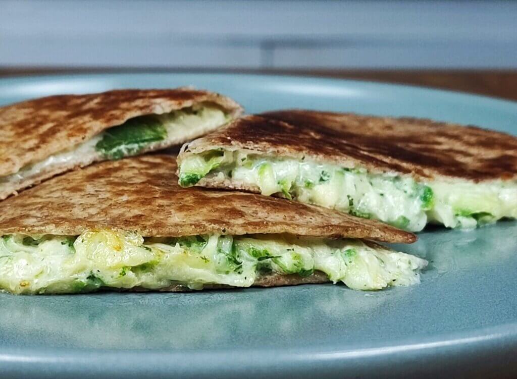 - Ψήνω σε αντικολλητικό τηγάνι για 2-3 λεπτά από κάθε πλευρά, μέχρι να ροδίσει και να λιώσει το τυρί.