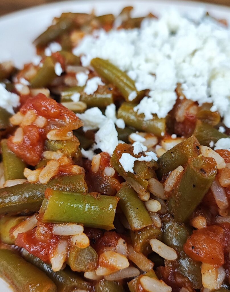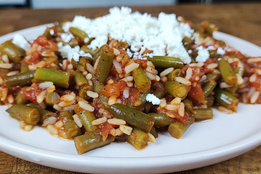 Φασολάκια με σκορδάτη ντομάτα και φέτα