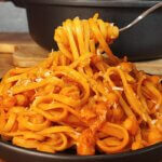 - Στο μεταξύ σε κατσαρόλα ή βαθύ τηγάνι ρίξε όλα τα υλικά για τη σάλτσα σου. Ανακάτεψε και μόλις αρχίσει να πήζει ρίξε μέσα τα βρασμένα ζυμαρικά σου.