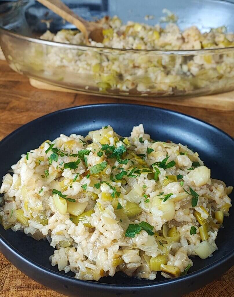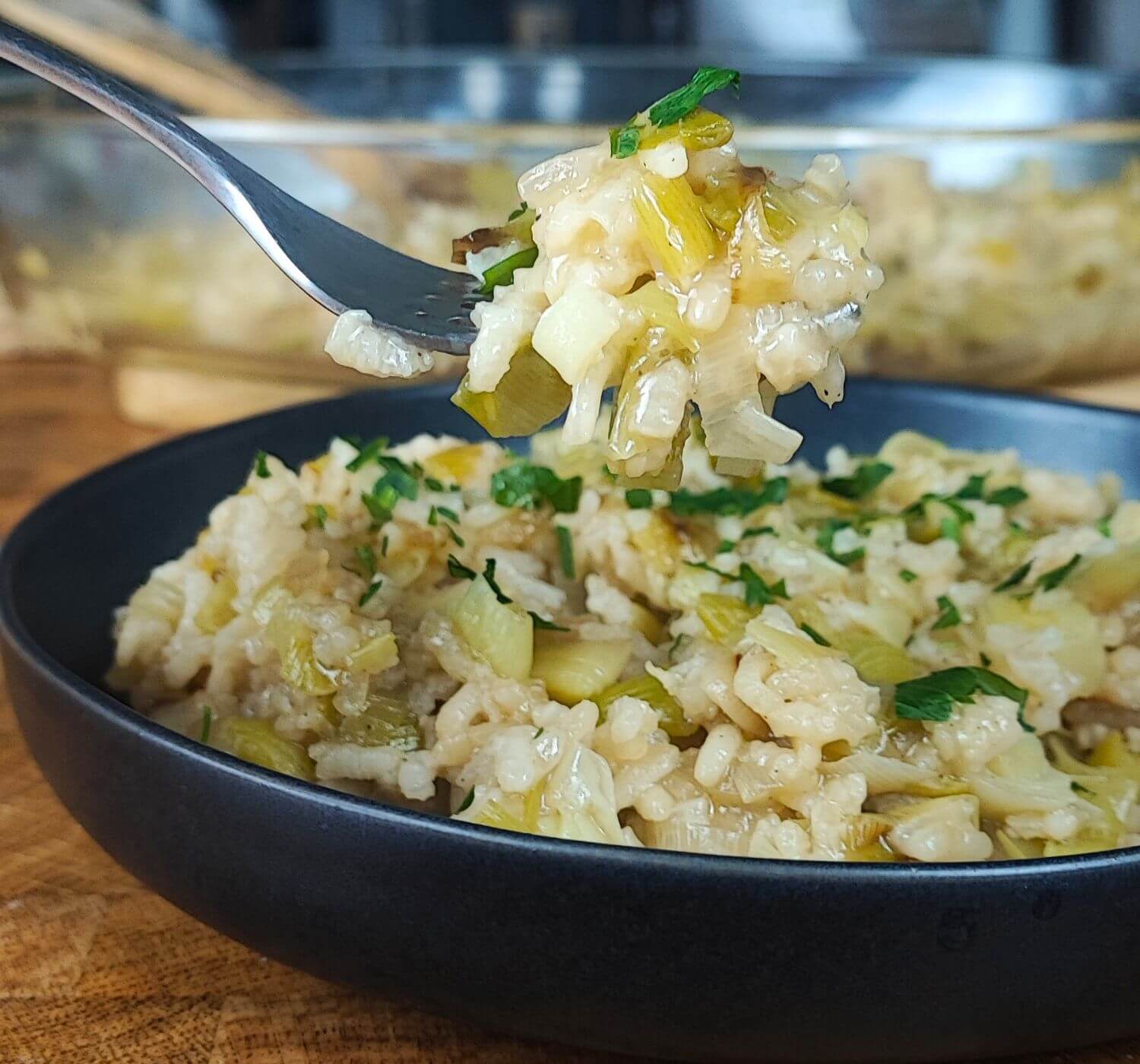 Το πρασόρυζο ταψιού είναι ένα από τα πιο απλά και αγαπημένα νηστίσιμα φαγητά της ελληνικής κουζίνας. Σε αντίθεση με την κατσαρόλα, στο φούρνο τα πράσα γλυκαίνουν, το ρύζι μελώνει και το αποτέλεσμα είναι πιο δεμένο, πιο αρωματικό και ιδανικό για καθημερινό comfort φαγητό.