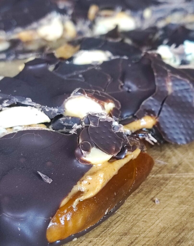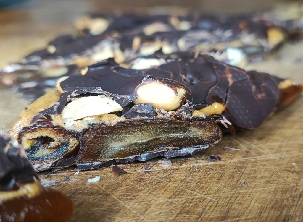 Βγάλε από το ψυγείο και άπλωσε σοκολάτα και από την άλλη μεριά, από τη μεριά των χουρμάδων.