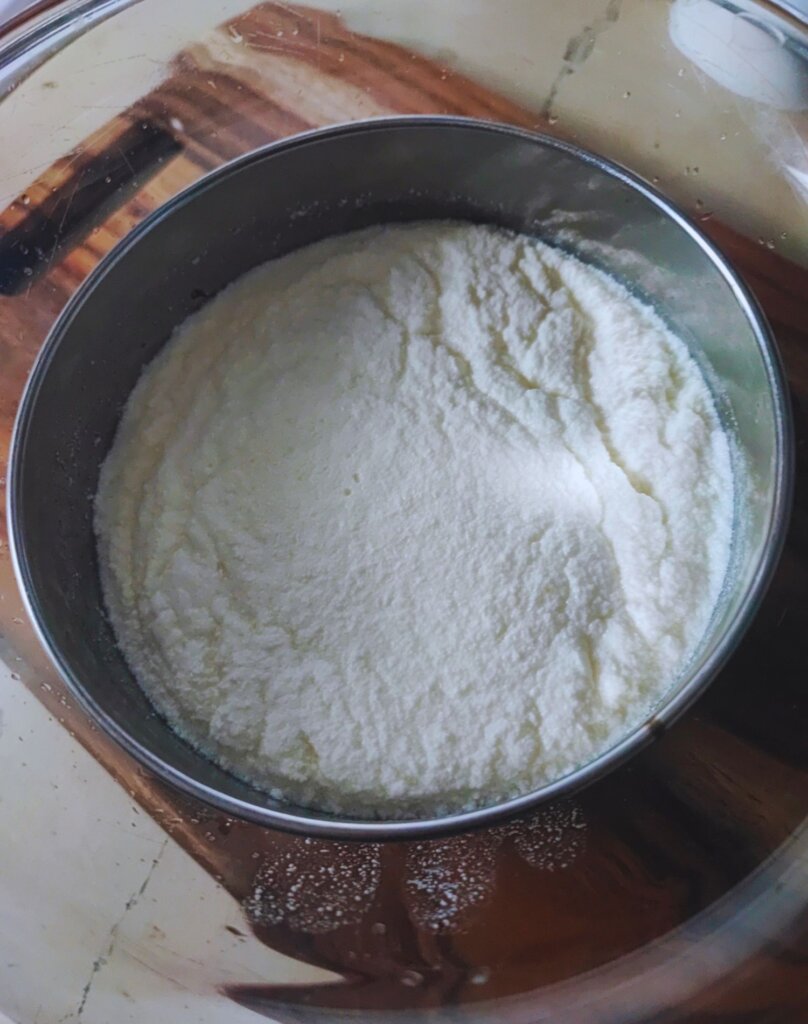 • Πιέζω ελαφρά για να φύγουν τα υγρά και κρατάω το τυρί. Αφήνω για 15-20 λεπτά. Το τυρί cottage είναι έτοιμο.