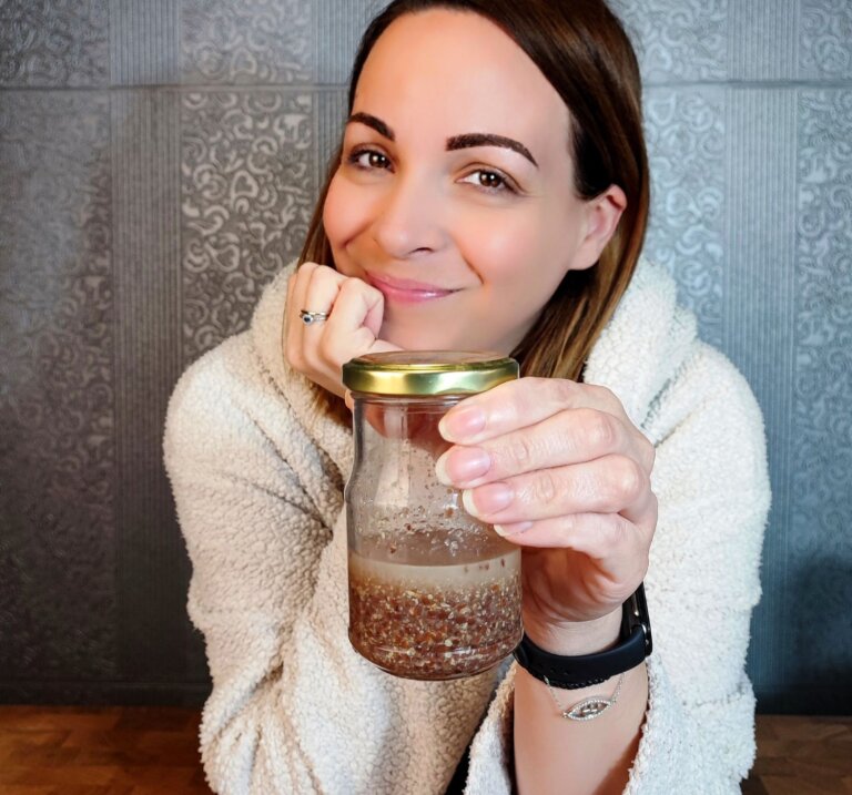 - Το μόνο που έχεις να κάνεις είναι να ανακατέψεις σε ένα βαζάκι τον αλεσμένο λιναρόσπορο με το νερό. Άφησε στην άκρη για 15 λεπτά.